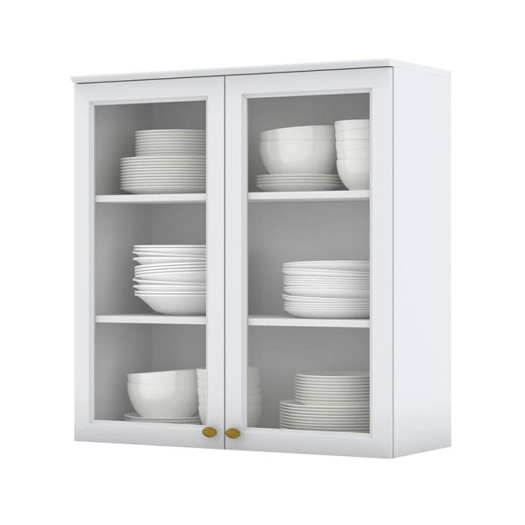 Armário Aéreo 2 Portas de Vidro 80 cm Nova York Branco HP – Henn