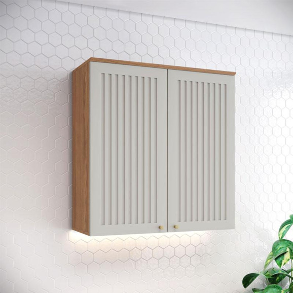 Armário Aéreo 2 Portas Ripado 80 cm Ambiente Requinte Nature Areia Hp – Henn