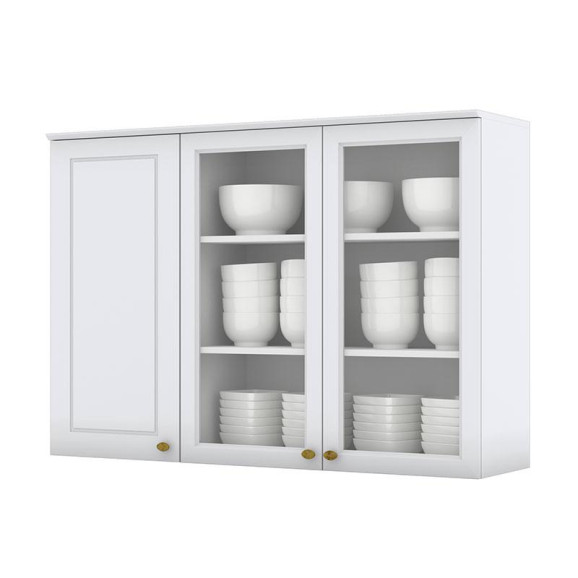 Armário Aéreo 3 Portas com Vidro 120 cm Nova York Branco HP – Henn