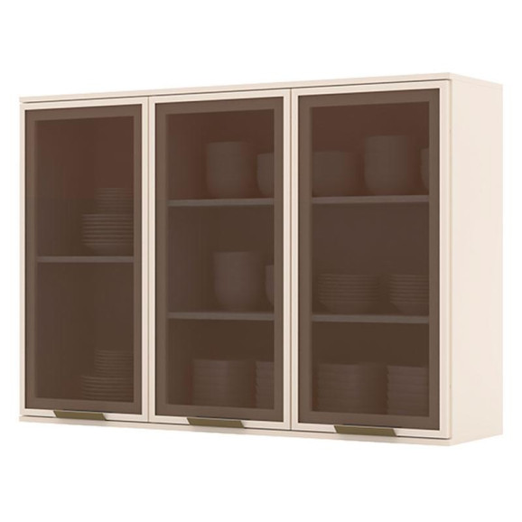 Armário Aéreo 3 Portas de Vidro 120 cm Connect Off White – Henn