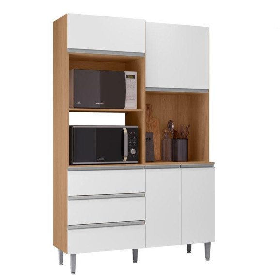 Apresentamos para você este belo kit compacto Livia. Composto por dois nichos para colocar Microondas e Forno Elétrico com duas portas de abrir , duas portas basculante com pistão e três gavetas. Perfeito para acomodar seus acessórios ou objetos decorativos.