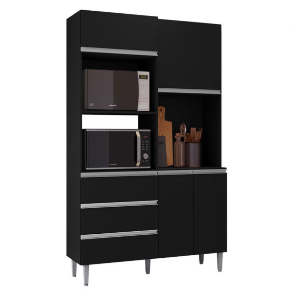 Armário para Cozinha Kit Livia 120 cm Preto Fosco - AJL