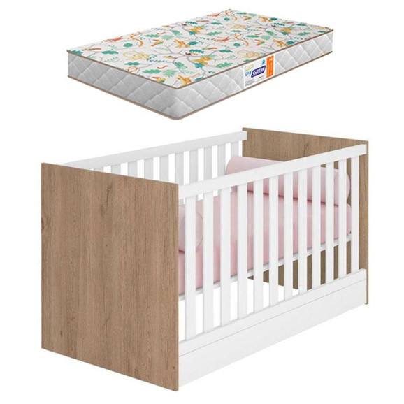Berço Americano 100 Doce Sonho Carvalho Rústico TOQ Branco com Colchão Gazin - Qmovi