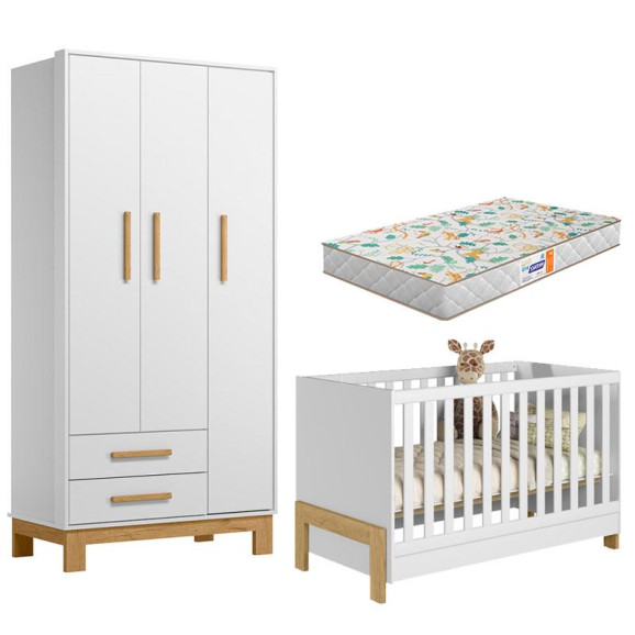 Berço Americano 4300 Mini Cama Fantasia e Guarda Roupa Infantil Q Encanto Slim 4340 Branco Acetinado com Colchão Gazin – Qmovi