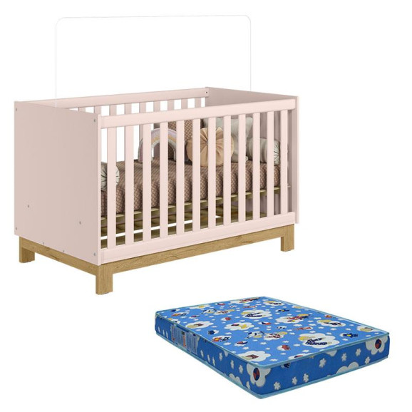 Berço Americano 4315 Q Encanto Slim Rosa Acetinado com Colchão Tend Tudo – Qmovi