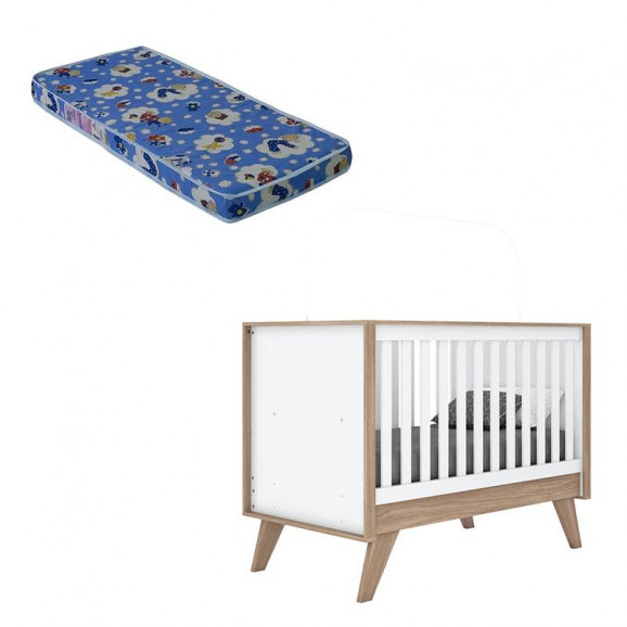 Berço Americano Confete Branco Brilho Jequitibá HP com Colchão Ortobom - Henn