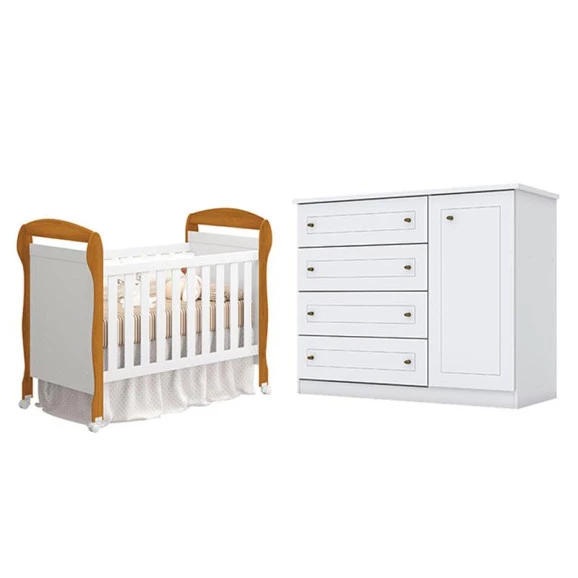 Conjunto Berço Americano Danny e Cômoda Infantil Reller na cor Branco Acetinado , ideal para um quarto de bebê moderno e funcional. Produzidos com excelente acabamento, o berço oferece segurança e conforto para o bebê, enquanto a cômoda garante praticidade e organização no dia a dia. Design elegante, resistente e perfeito para acompanhar as primeiras fases da infância.