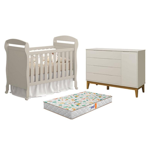 O Berço Americano Danny com Colchão Gazin e Cômoda com Porta Elfe Classic Areia Acetinado - Reller é a combinação ideal de conforto, segurança e praticidade para o quarto do bebê. Com acabamento sofisticado em areia acetinado, o berço oferece aconchego e proteção, acompanhado do colchão Gazin que garante noites tranquilas. A cômoda com porta Elfe Classic proporciona amplo espaço e organização prática, criando um ambiente moderno, funcional e acolhedor.