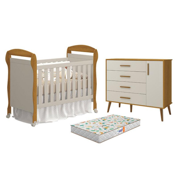 Berço Americano Danny com Colchão Gazin e Cômoda com Porta Isis Areia Savana Acetinado - Reller
