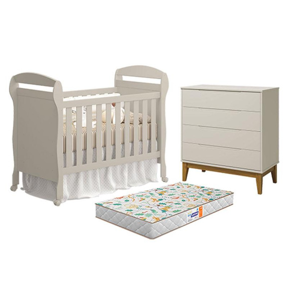 Berço Americano Danny com Colchão Gazin e Cômoda Gaveteiro Elfe Classic Areia Acetinado Amadeirado - Reller