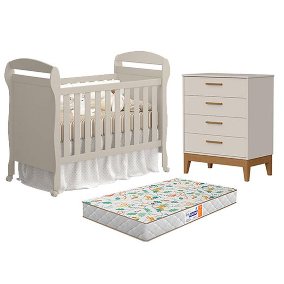 Berço Americano Danny com Colchão Gazin e Cômoda Gaveteiro Infantil Flip Areia Acetinado - Reller