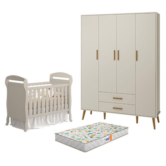 Berço Americano Danny com Colchão Gazin e Guarda Roupa 4 Portas Isis Areia Acetinado - Reller