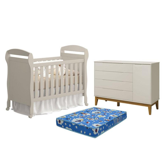 O Berço Americano Danny com Colchão Ortobom e Cômoda com Porta Elfe Classic Areia Acetinado - Reller é a combinação perfeita de conforto, segurança e praticidade para o quarto do seu bebê. Com acabamento sofisticado em areia acetinado, o berço oferece aconchego e proteção, enquanto o colchão Ortobom garante suporte ideal para noites mais tranquilas. A cômoda com porta Elfe Classic proporciona organização funcional e amplo espaço, criando um ambiente moderno, harmonioso e cheio de charme.