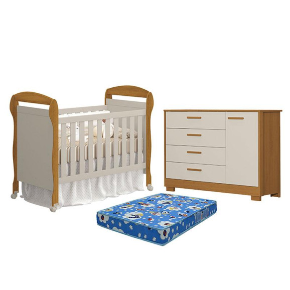 Berço Americano Danny com Colchão Tend Tudo e Cômoda com Porta Zaki Areia Savana Acetinado - Reller