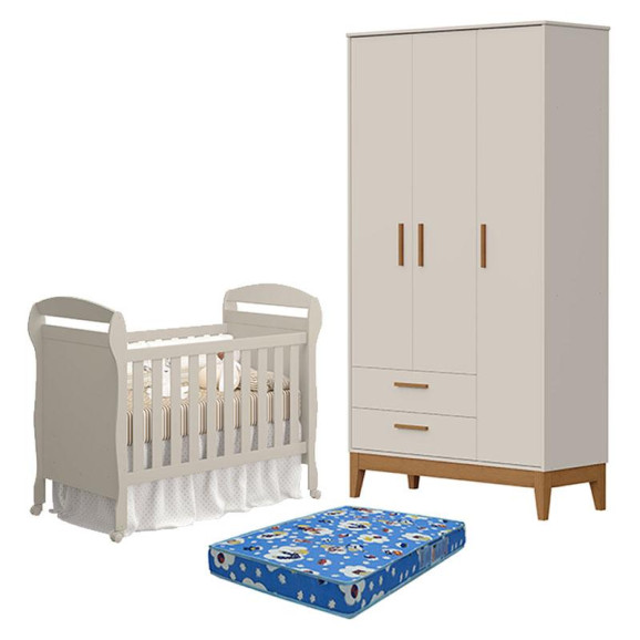Guarda Roupa Infantil Flip 3 Portas Areia Acetinado - Reller