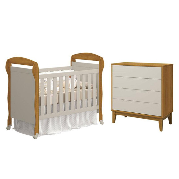 Berço Americano Danny e Cômoda Gaveteiro Elfe Classic Areia Savana Acetinado Amadeirado - Reller