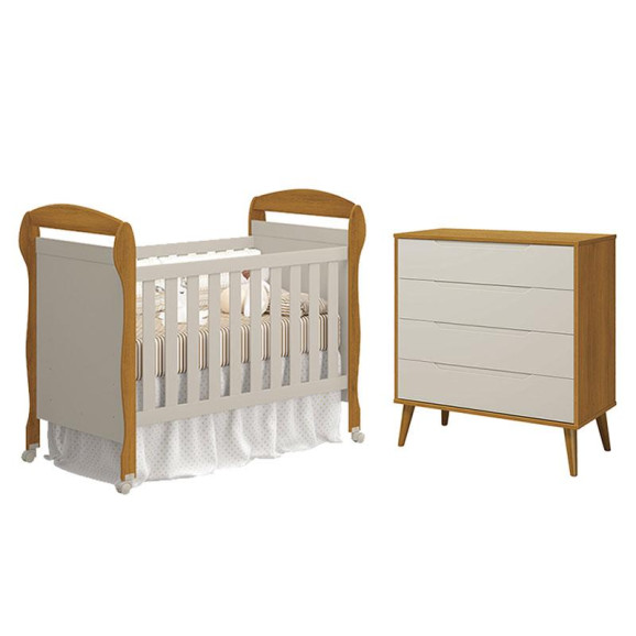 Berço Americano Danny e Cômoda Gaveteiro Elfe Retrô Areia Savana Acetinado Amadeirado - Reller