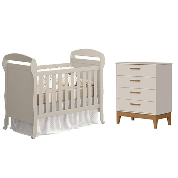 Berço Americano Danny e Cômoda Gaveteiro Flip Areia Acetinado - Reller