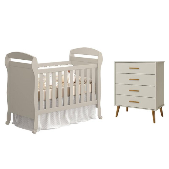 O Berço Americano Danny e Cômoda Gaveteiro Isis Areia Acetinado - Reller é a combinação ideal de elegância, conforto e funcionalidade para o quarto do seu bebê. Com acabamento sofisticado em areia acetinado, o berço oferece segurança e aconchego, enquanto a cômoda gaveteiro Isis proporciona amplo espaço e organização prática para roupas e acessórios. Um conjunto moderno e harmonioso que transforma o ambiente em um espaço acolhedor e cheio de charme.