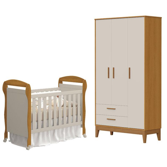 Berço Americano Danny e Guarda Roupa 3 Portas Flip Areia Savana Acetinado - Reller