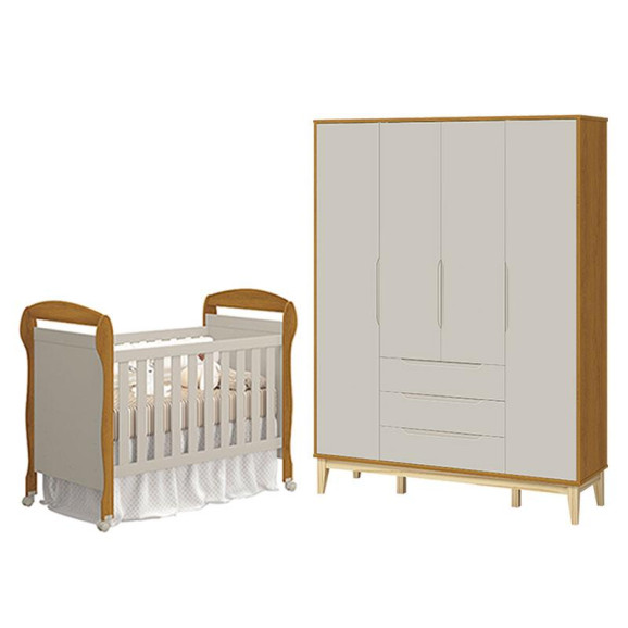 Berço Americano Danny e Guarda Roupa 4 Portas Elfe Classic Areia Savana Natural - Reller