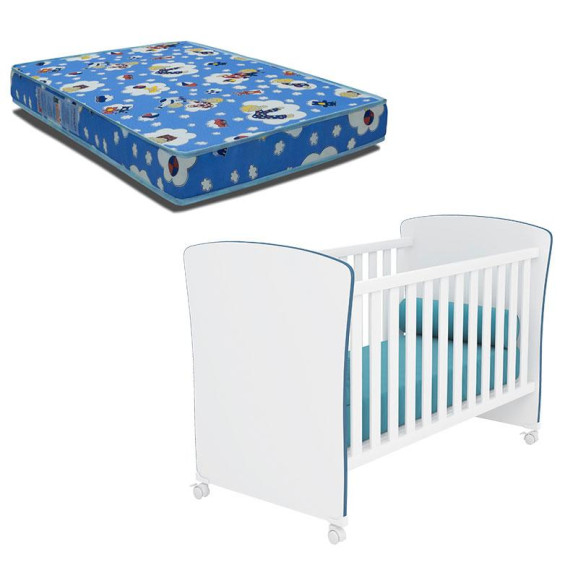 Berço Americano Doce Sonho 2484 Branco Azul Brilho e Colchão Tend Tudo - Qmovi