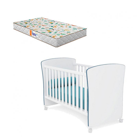 Berço Americano Doce Sonho 2484 Branco Azul com Colchão Gazin – Qmovi