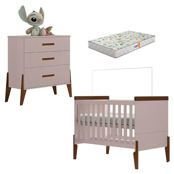 Berço Americano e Cômoda Gaveteiro Emilly Rose Magno com Colchão Gazin - Canaã Baby
