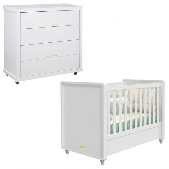 Berço Americano e Cômoda Gaveteiro Infantil Tutto New Branco Acetinado - Matic