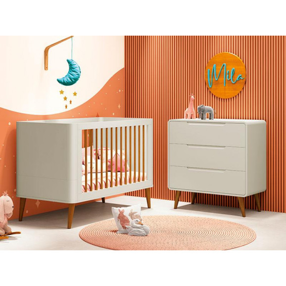 Berço Americano e Cômoda Gaveteiro Mila Ambiente Areia Acetinado Amadeirado - Reller