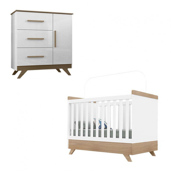 Berço Americano e Cômoda Infantil Retrô Vitória Branco Brilho Wengue - Canaã