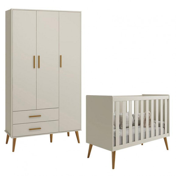 Berço Americano e Guarda Roupa Infantil 3 Portas Isis Areia Acetinado - Reller