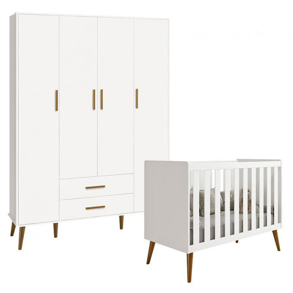 Berço Americano e Guarda Roupa Infantil 4 Portas Isis Branco Acetinado - Reller
