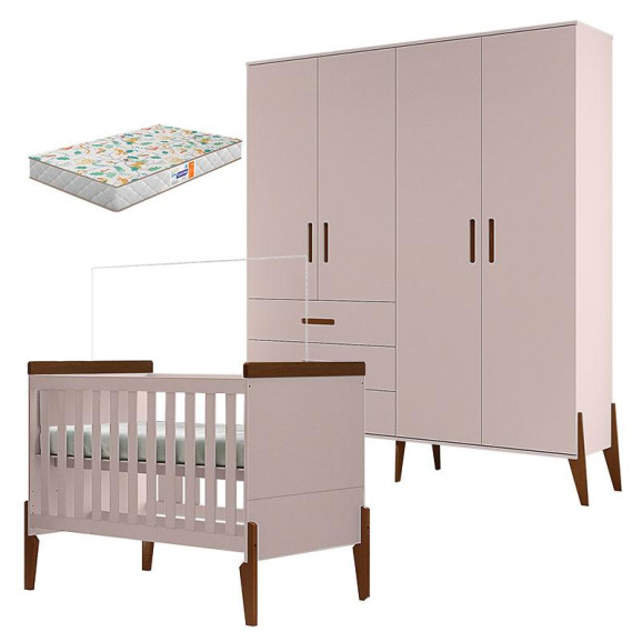 Berço Americano e Guarda Roupa Infantil Emilly Rose Magno com Colchão Gazin - Canaã