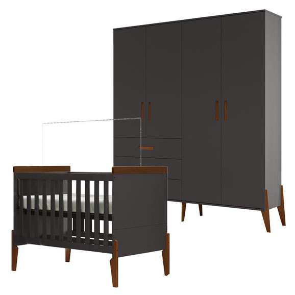 Berço Americano e Guarda Roupa Infantil Emilly Titanium Magno - Canaã