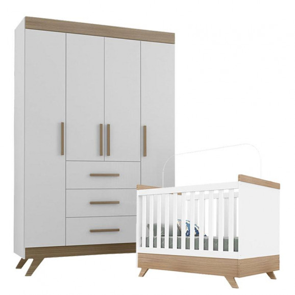 Berço Americano e Guarda Roupa Infantil Retrô Vitória Branco Brilho Wengue - Canaã