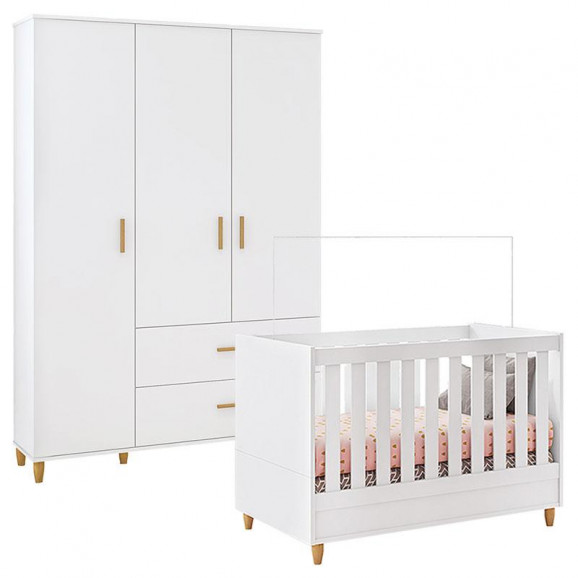 Berço Americano e Guarda Roupa Retro Milka 3 Portas Branco Acetinado – Móveis Estrela