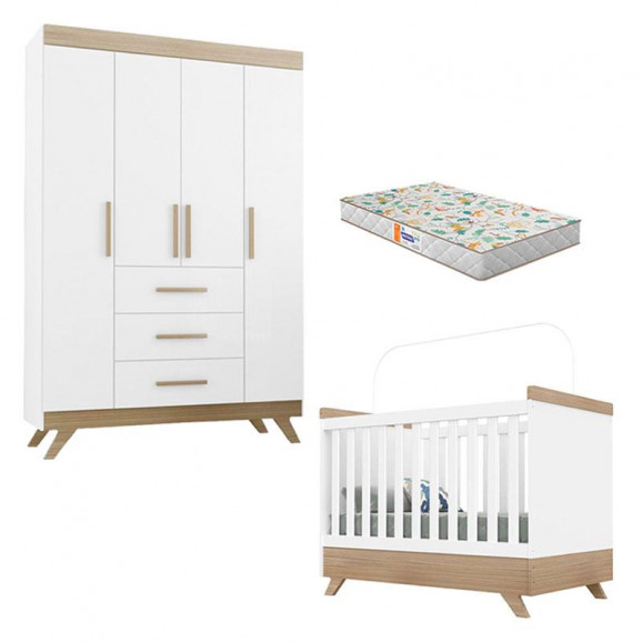 Berço Americano e Guarda Roupa Retrô Vitoria Branco Brilho Wengue com Colchão Gazin – Canaã