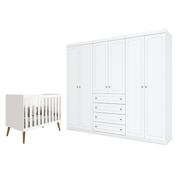 Berço Americano Isis Branco Acetinado Savana - Reller e Guarda Roupa Casal Americano 6 Portas Branco HP – Henn