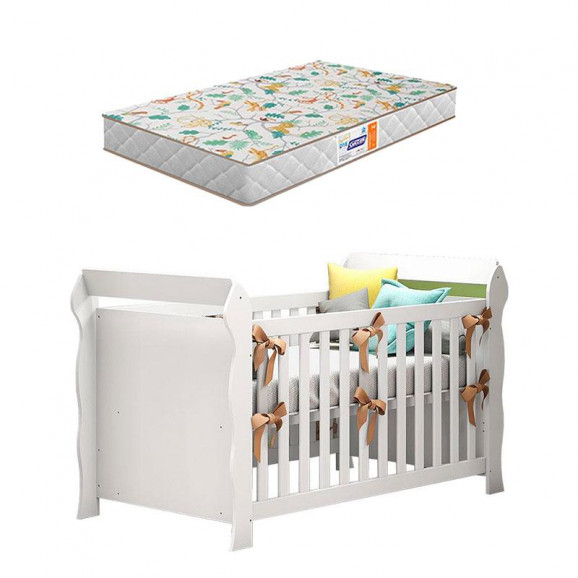 Berço Americano Lara Branco Brilho com Colchão Gazin – Carolina