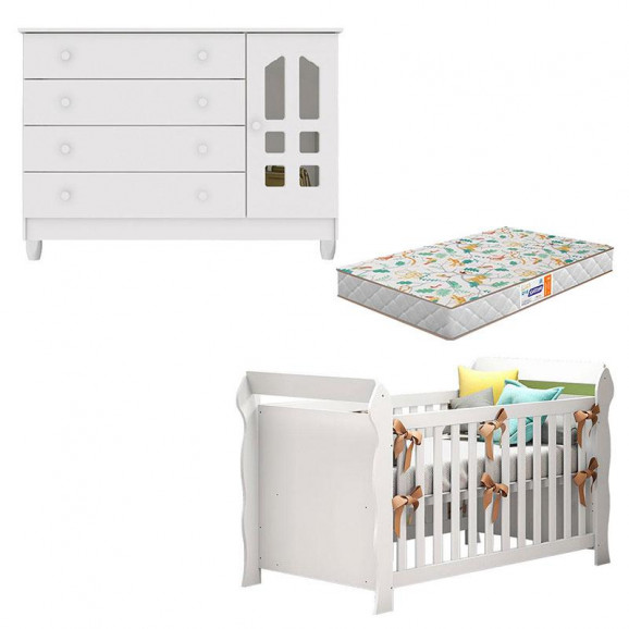 Apresentamos o Berço Lara com Cômoda Gran Selena fabricado pela Carolina na cor Branco Brilho, proporciona ao ambiente conforto e praticidade, possui alta qualidade e segurança que seu bebê vai precisar. Aproveite!