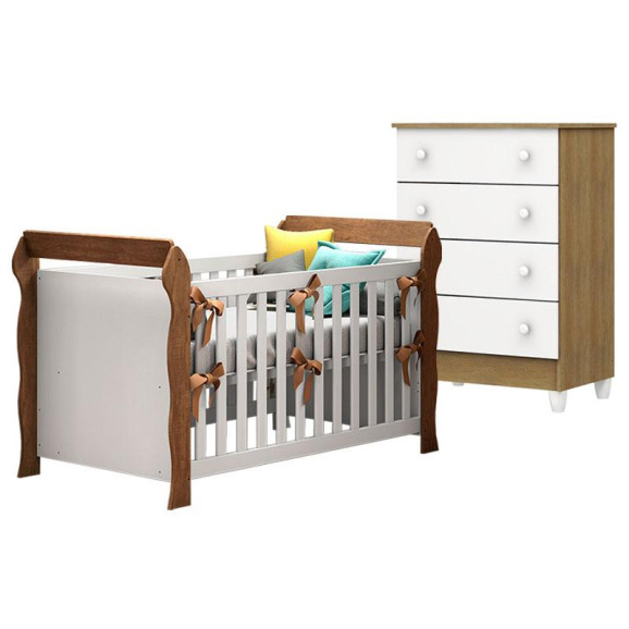 Berço Americano Lara com Cômoda Gaveteiro Mel Flat Branco Acetinado Amadeirado – Carolina