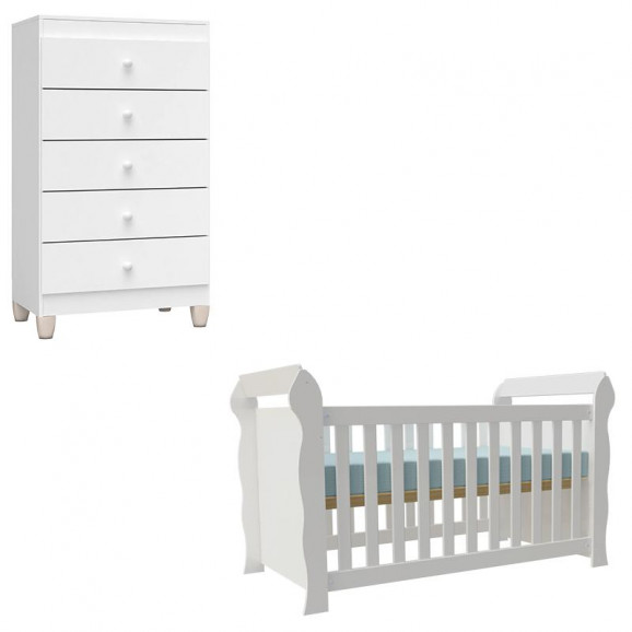Berço Americano Lara e Cômoda Gaveteiro Ternura Baby Branco Brilho - Incorplac