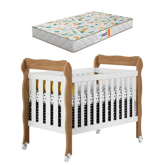 Berço Americano Lila Branco Acetinado Amadeirado com Colchão Gazin – Carolina
