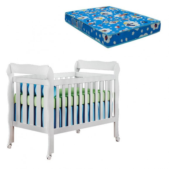 Berço Americano Lila Branco Brilho com Colchão - Carolina