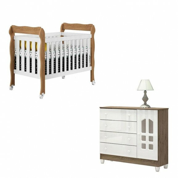 Berço Americano Lila e Cômoda Infantil Selena Branco Acetinado Amadeirado – Carolina