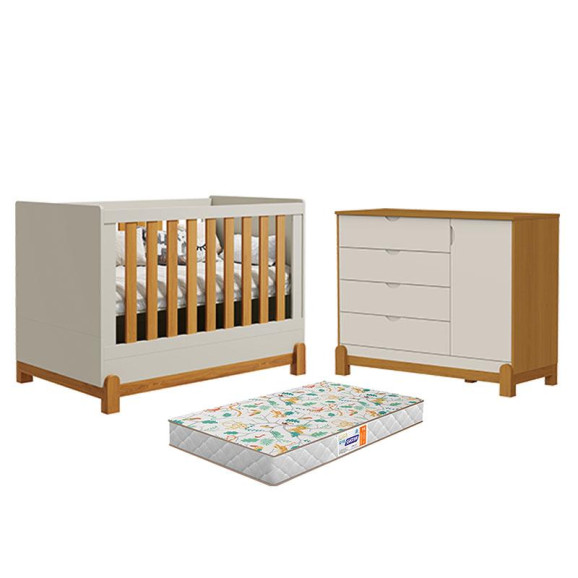 Berço Americano Lótus Liso Areia Savana com Cômoda Sapateira Lótus Liso Areia Savana e Colchão Gazin - Reller