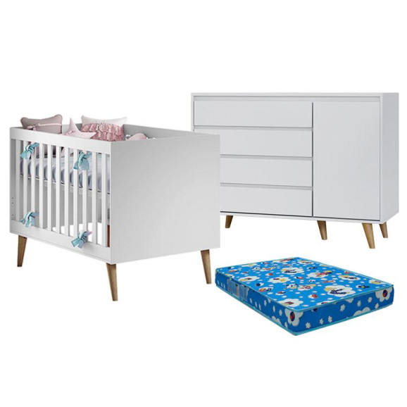 Mamãe e Papai chegou a tão esperada hora de montar o quartinho do Bebê? Então apresentamos para você este belo conjunto composto pelo berço da linha Ludmila e a cômoda da linha Lorena. O berço foi cuidadosamente projetado para acompanhar todas as fases de crescimento do seu filho, transformando-se em uma mini cama e acompanha colchão Ortobom. Já a cômoda vem equipada com quatro gavetas com corrediças telescópicas, além de uma porta oferecendo um espaço extra. Assim como o berço, a cômoda possui pés em madeira maciça garantindo mais durabilidade. Fabricados pela Carolina Baby, são desenvolvidos em 100% MDF unindo praticidade, segurança e estilo sem abrir mão da qualidade. Confira e aproveite!
