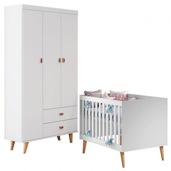 Berço Americano Ludmila e Guarda Roupa 3 Portas Duda Branco Acetinado Bétula - Carolina