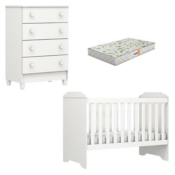 Berço Americano Mini Cama e Cômoda Mel Flat Branco Brilho com Colchão Gazin - Carolina